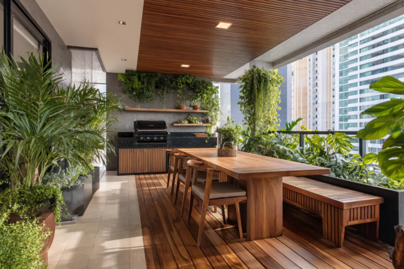 Se você busca um ambiente mais aconchegante, o porcelanato líquido amadeirado é a escolha perfeita. Ele reproduz a textura e o calor da madeira com a praticidade e a durabilidade da resina. Combine com móveis de madeira, plantas e tecidos naturais para criar um espaço acolhedor e relaxante.