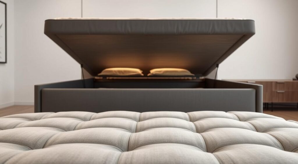 Outro ponto importante é a tecnologia cama baú que melhora suporte e ergonomia. As molas ensacadas são um exemplo notável, oferecendo suporte perfeito para a coluna. Essa inovação eleva a qualidade do sono, tornando as noites mais tranquilas e agradáveis.