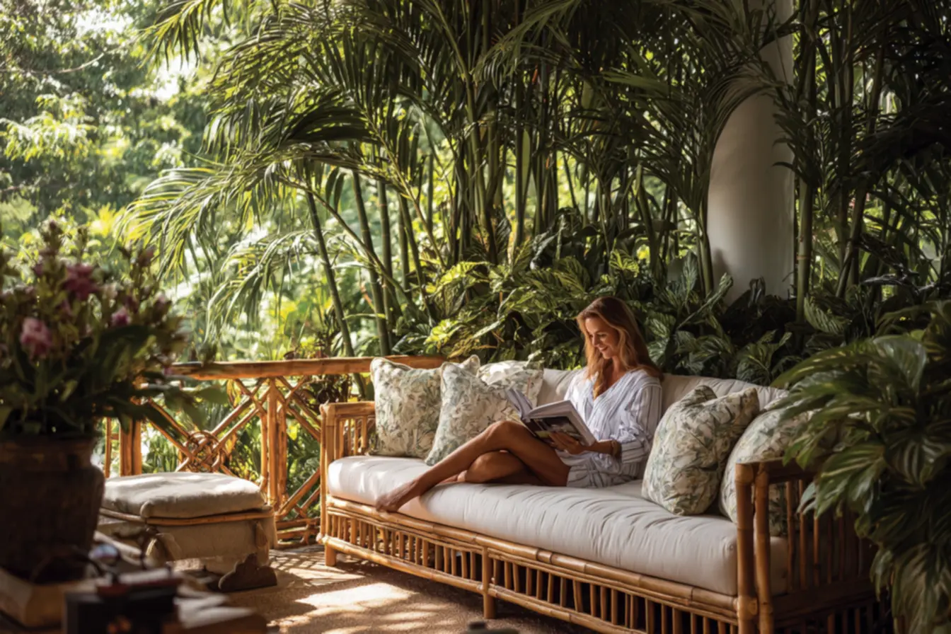 O bambú oferece uma estética zen e relaxante, perfeita para quem busca um refúgio da agitação do dia a dia. Sua leveza visual não compete com o verde do jardim, mas sim o complementa, criando uma atmosfera acolhedora e convidativa.