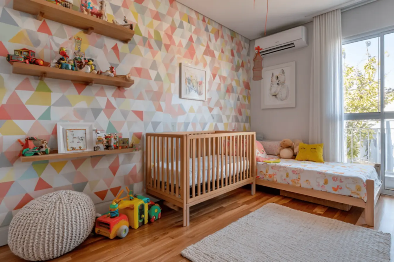 Imagine pequenos pontos, losangos delicados ou triângulos em um fundo claro. Eles adicionam interesse sem saturar. A repetição suave desses padrões faz com que o olho percorra a parede, gerando uma percepção de amplitude. Essa é uma das maneiras mais elegantes de criar um ambiente mais arejado.