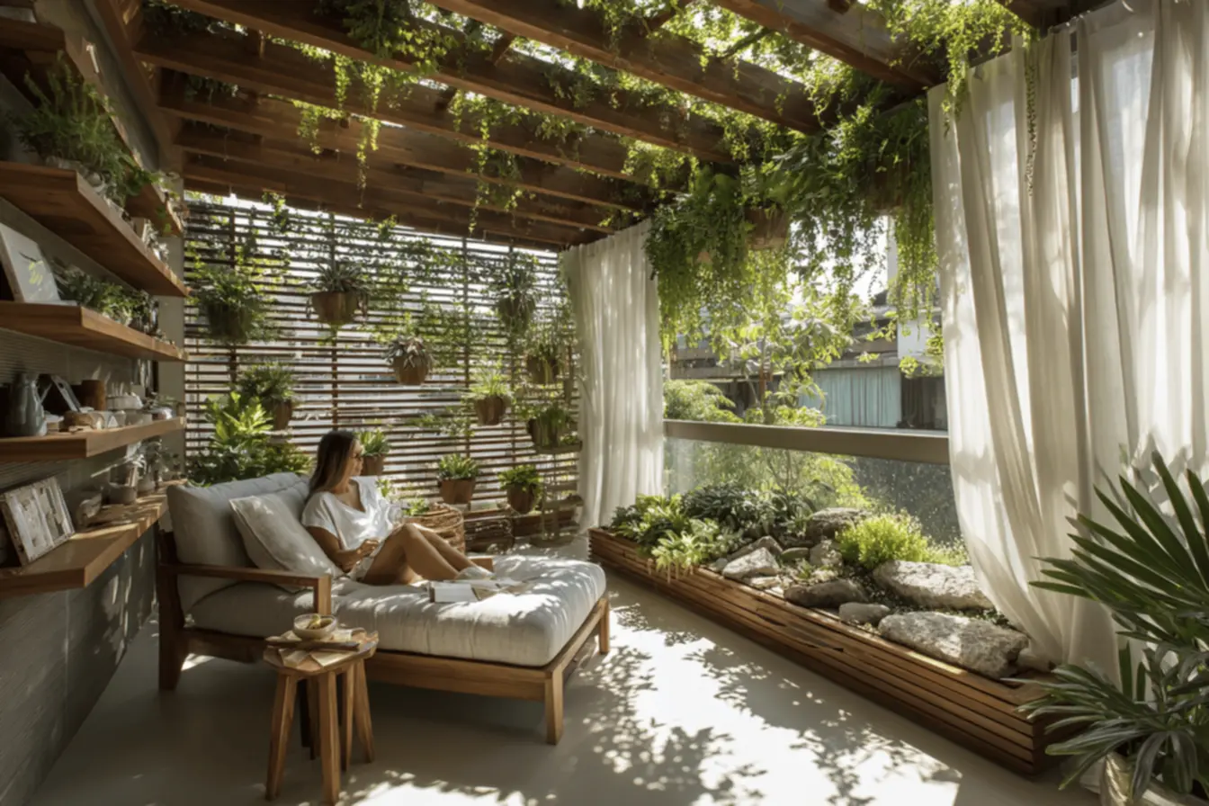 Para desfrutar da sua varanda em qualquer estação, a proteção solar e climática é fundamental. Ninguém gosta de ficar exposto ao sol forte ou à chuva enquanto tenta relaxar. Cortinas de rolo, toldos retráteis ou pergolados com cobertura são soluções elegantes e eficazes. As cortinas, por exemplo, oferecem privacidade e controle da luminosidade, além de protegerem os móveis do desbotamento.