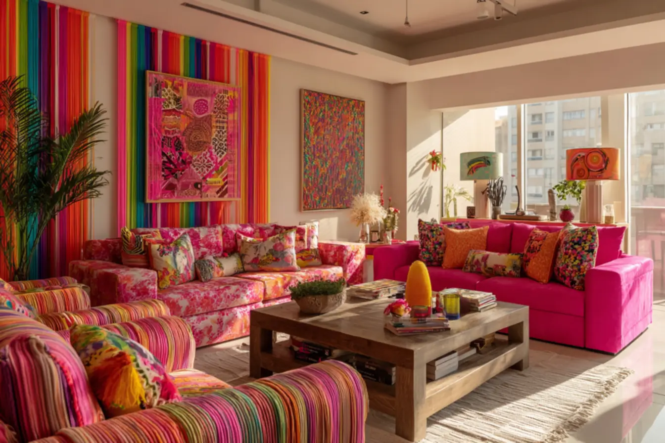 Se tem uma coisa que não pode faltar na decoração de Carnaval simples, são as cores! Abuse de tons vibrantes como o amarelo, o laranja, o rosa pink, o verde e, claro, muito brilho! As cores transmitem a alegria e a energia contagiante da festa. Que tal começar criando um painel de fitas coloridas na sala? É super fácil de fazer e o resultado é incrível!