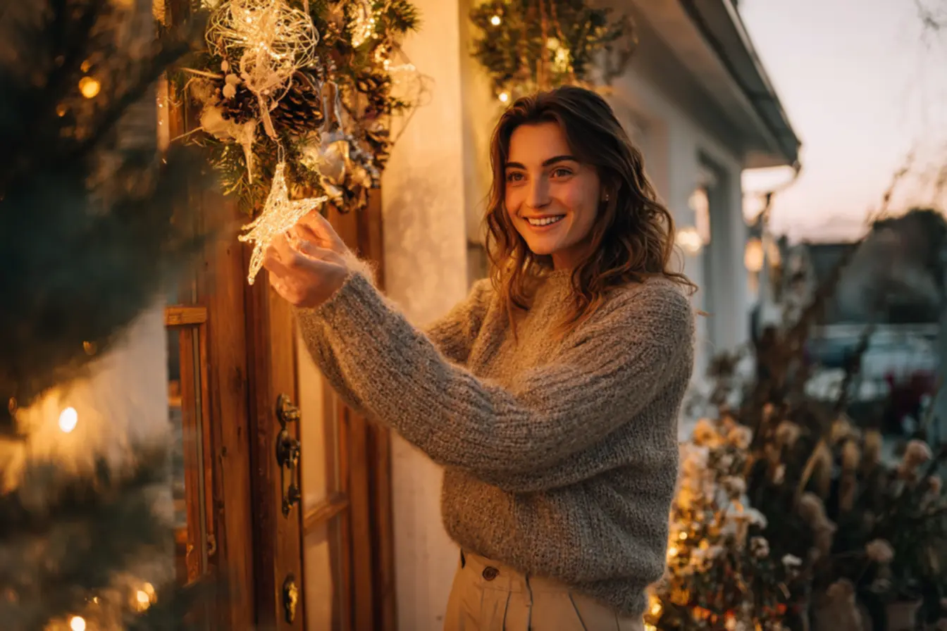 Pense comigo: a porta é o limite entre o mundo lá fora e o nosso santuário pessoal. Decorá-la no Natal é como vestir nossa casa com sua melhor roupa de festa. É um gesto que comunica cuidado, celebração e boas-vindas. Eu sempre digo às minhas clientes que a decoração da porta dita o tom de todo o resto do ambiente.