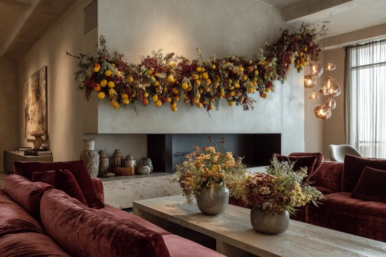 Esta é uma das minhas favoritas para criar uma atmosfera verdadeiramente acolhedora e convidativa. Uma guirlanda feita com frutas secas e especiarias não é apenas linda, mas também perfuma o ambiente com os aromas clássicos do Natal. É uma experiência sensorial completa que faz qualquer um se sentir em casa.