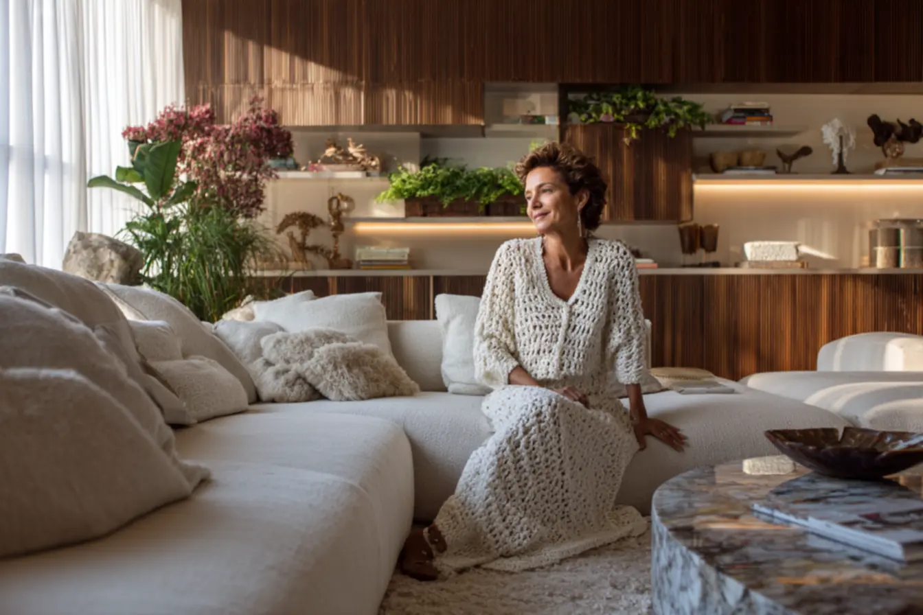 Essa peça artesanal infunde o ambiente com uma sensação de carinho, de trabalho manual e de tempo dedicado, valores que, para mim, são essenciais em um lar verdadeiramente acolhedor. É a sua sala se tornando um verdadeiro santuário de paz e beleza.