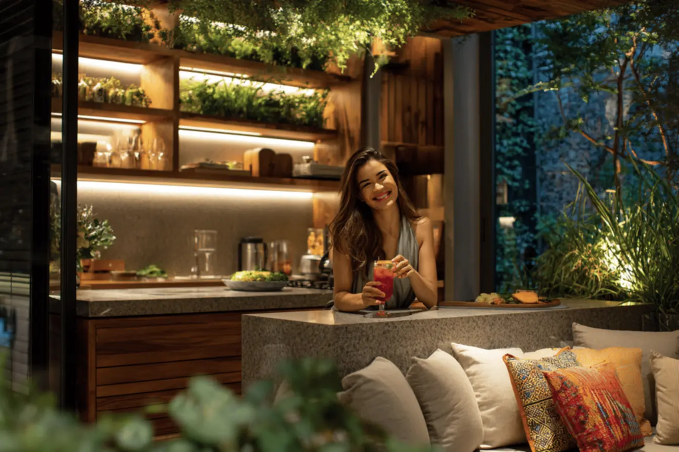 A alma de uma varanda gourmet não está apenas nos móveis, mas na sensação que ela transmite. Para transformar sua varanda gourmet pequena em um refúgio acolhedor, aposte em elementos que estimulem os sentidos.