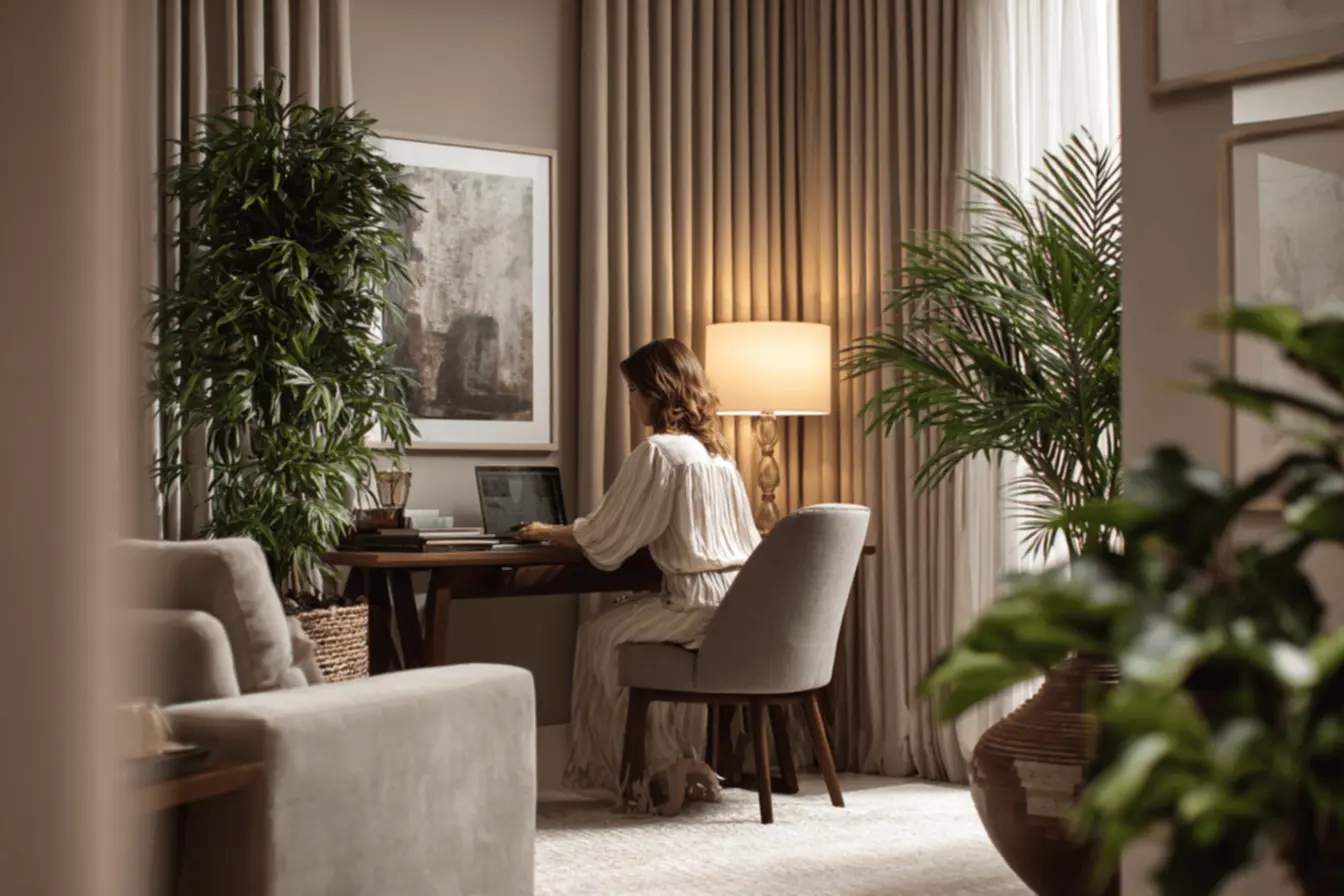 Minha filosofia é que a sua casa deve ser um refúgio, um lugar onde cada detalhe foi pensado para te abraçar. E isso inclui o seu espaço de trabalho. Ele pode e deve ser um lugar onde você se sinta feliz, produtivo e totalmente em paz.