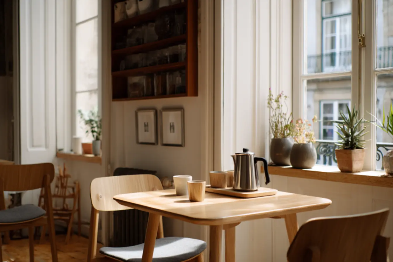 Crie um cantinho do café na sala pequena que seja acolhedor e estiloso, ideal para momentos especiais com amigos e família.